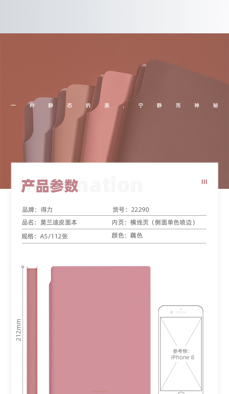 商品名称:得力22290U型笔插皮面本-A5-210mm*143mm/112张(红)