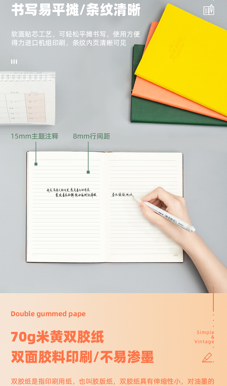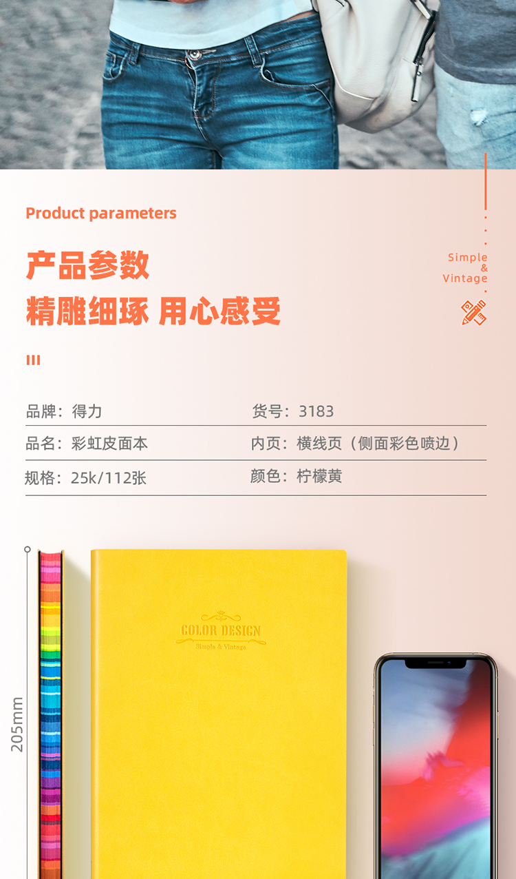 商品名称:得力3183活力系列皮面本(黄色)