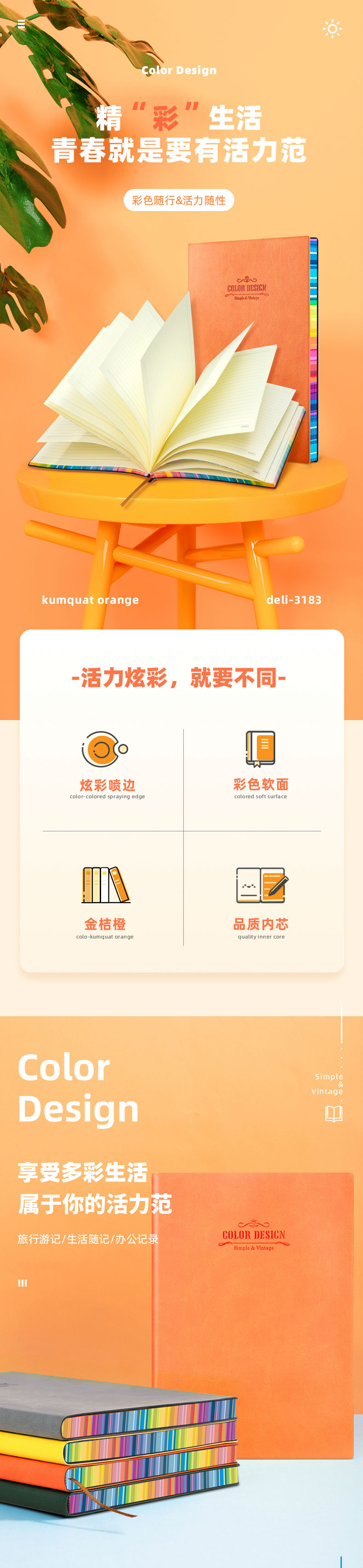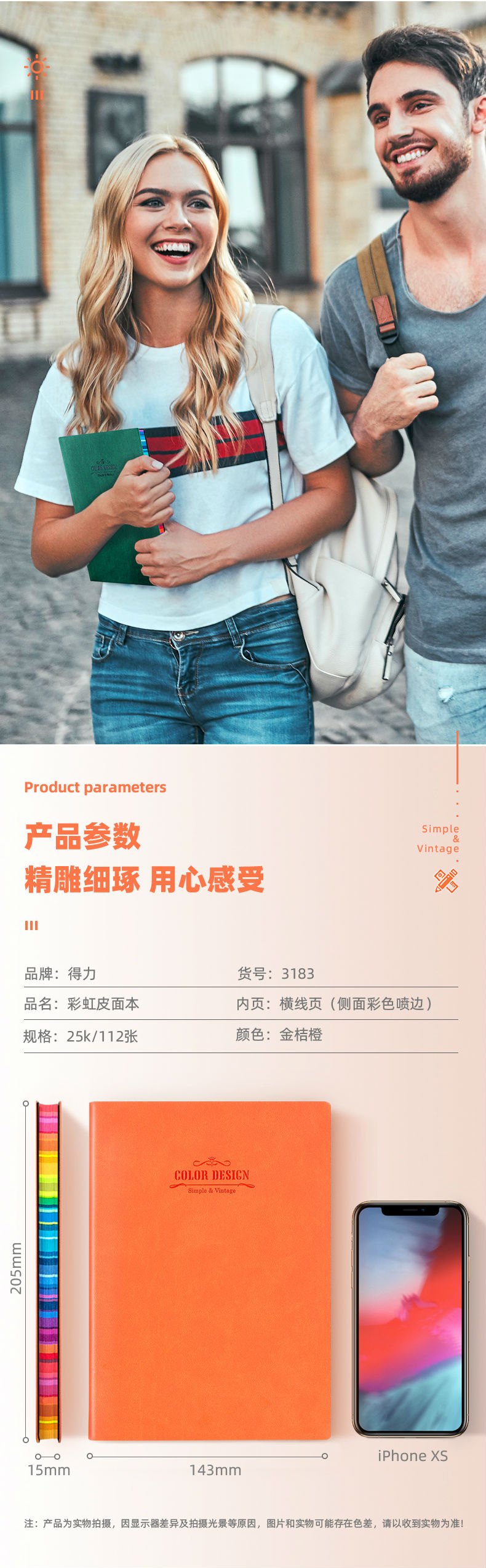 得力22290U型笔插皮面本-A5-210mm*143mm/112张(红)