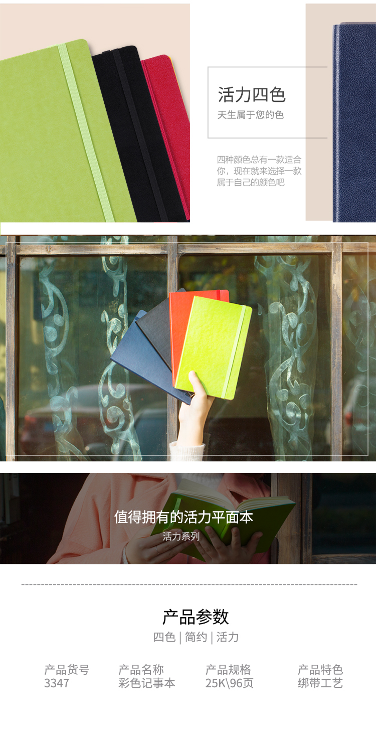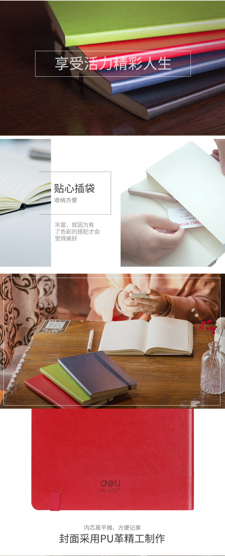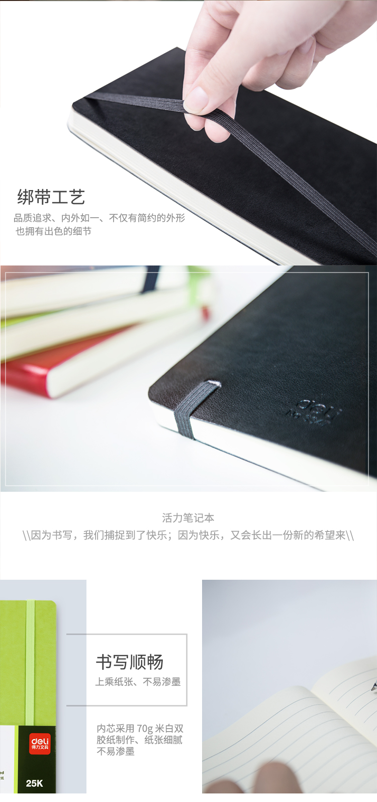 商品名称:得力3347高级记事本(黑色)-98页-25K