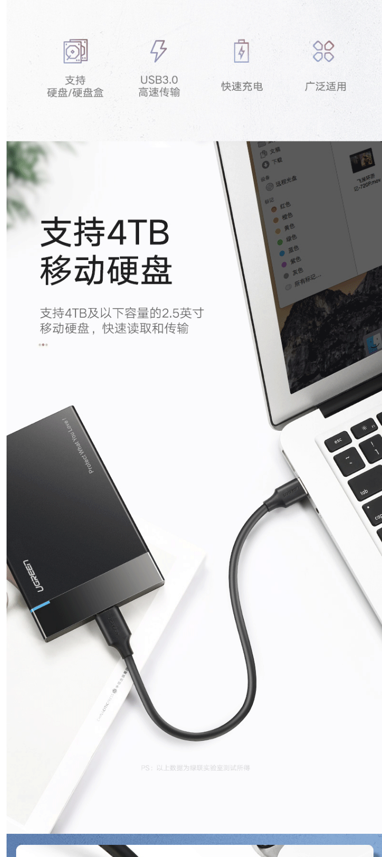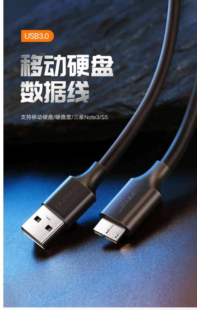 商品名称:绿联(UGREEN)移动硬盘数据连接线 Micro USB3.0高速传输 0.5米 60528
