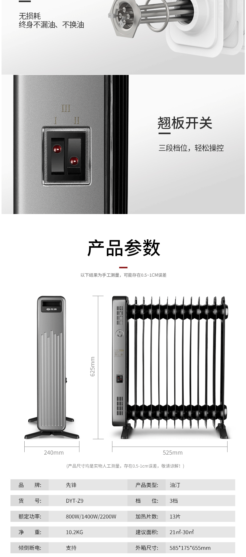 商品名称:先锋(Singfun)取暖器/电暖器/电暖气 电热油汀13片 暖气片DYT-Z9