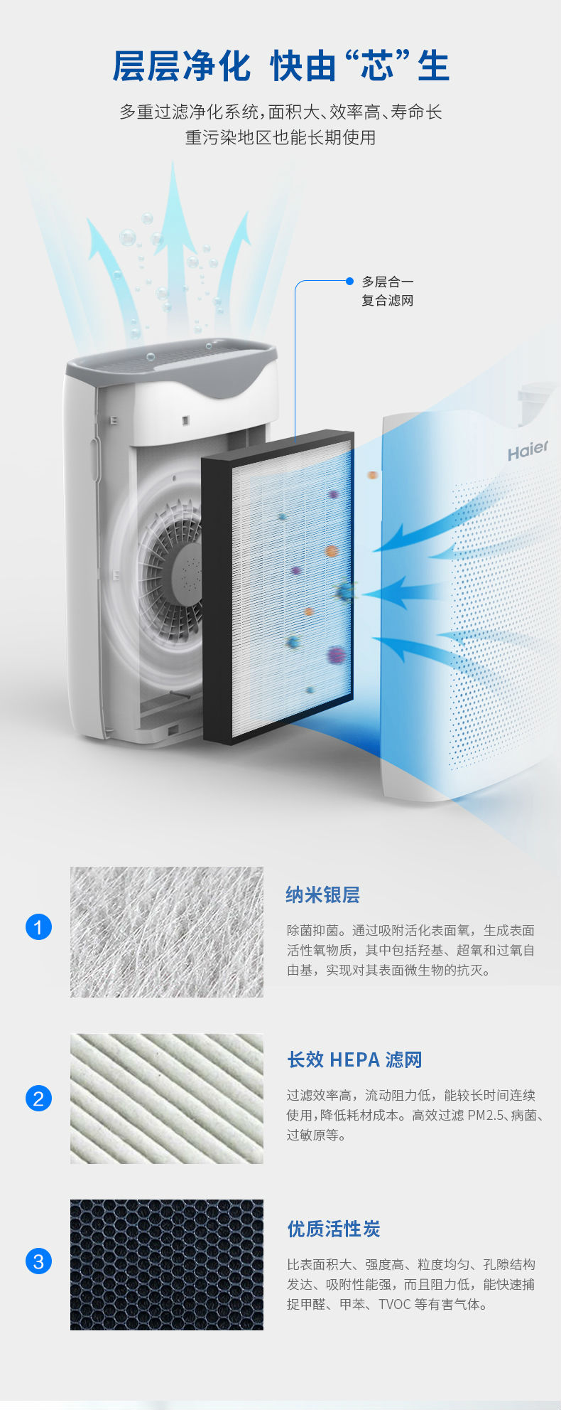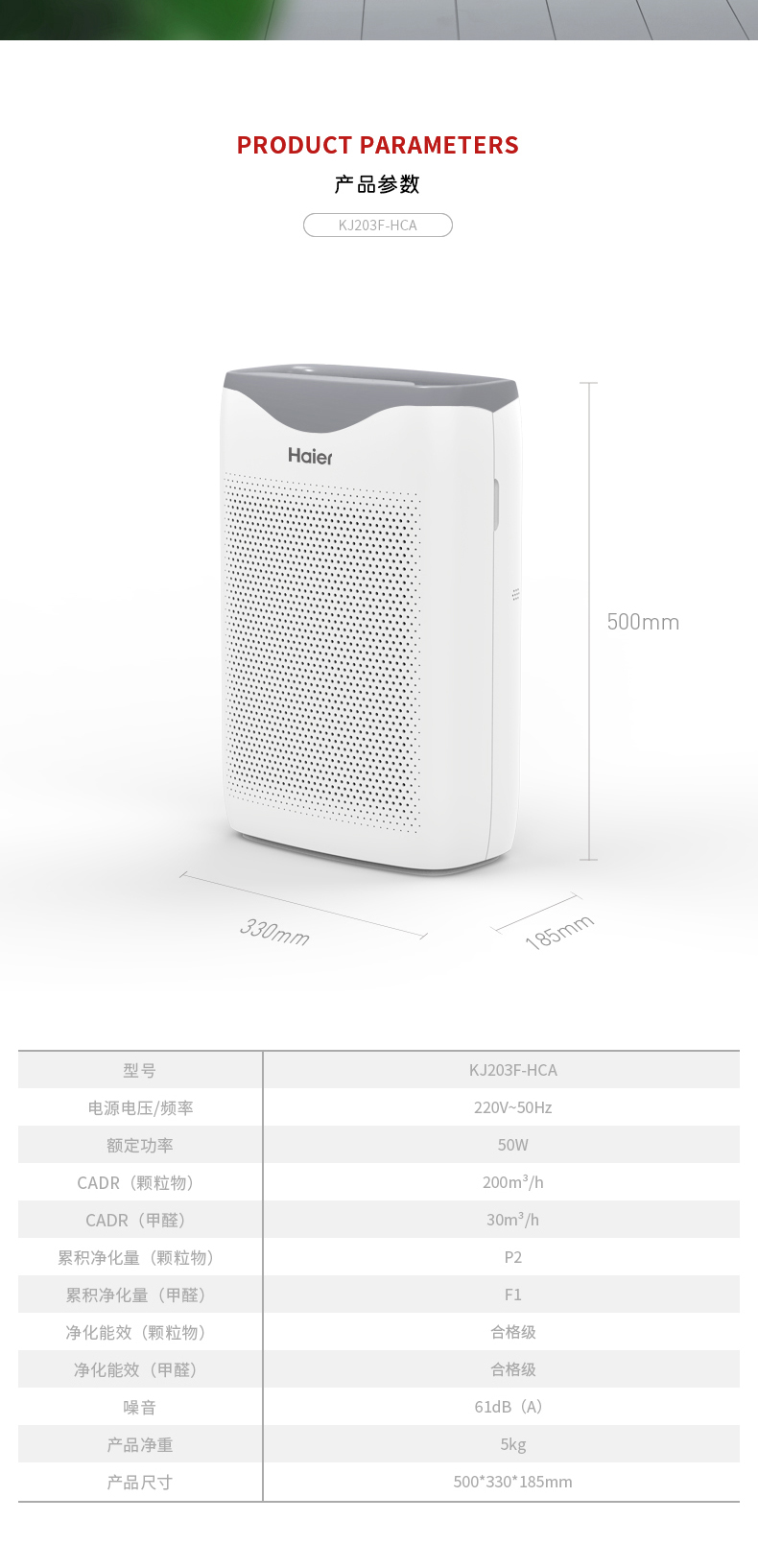 海尔(Haier)空气净化器KJ203F-HCA 除甲醛 定时功能 空气净化器