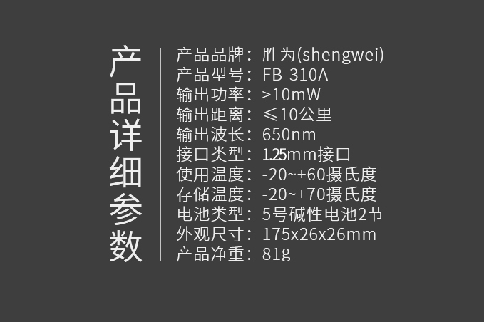 商品名称:胜为(shengwei)FB-310A 光纤笔10mW镭射红光源测试笔