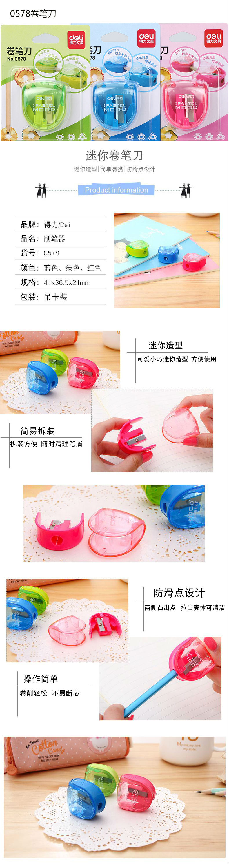 商品名称:得力(deli) 卷笔刀削笔器削笔刀0578卷(混色)(10只)