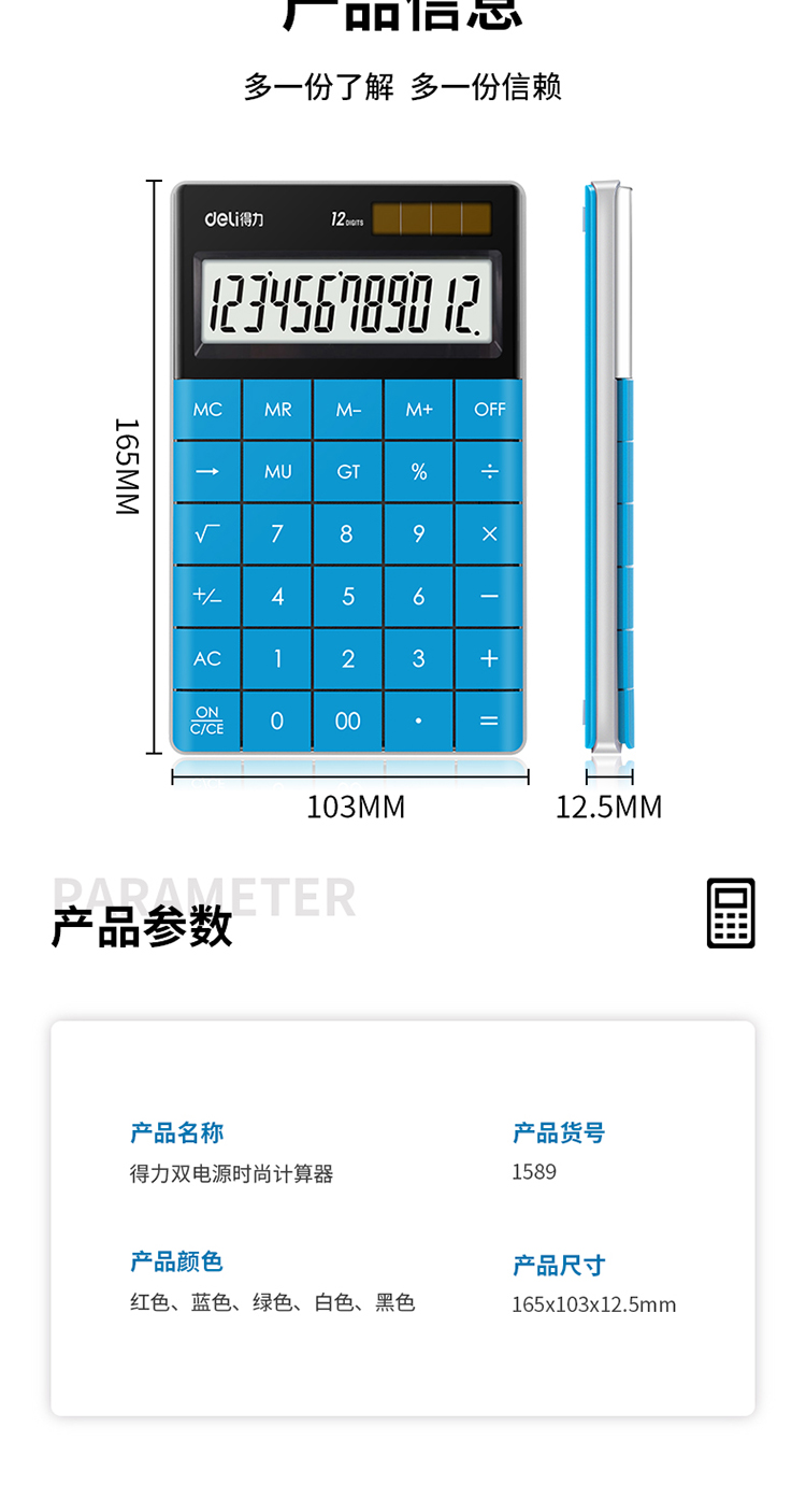 商品名称:得力1589桌面计算器(蓝)