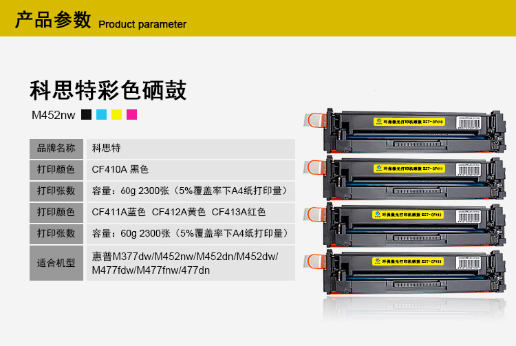 适用机型:HP Color LaserJet MFP M377DW/M452nw/M452dn/M452dw/M477fdw/M477fnw/477DN