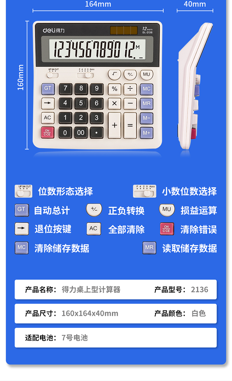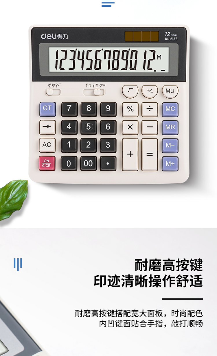 商品名称:得力2136桌面计算器(白)