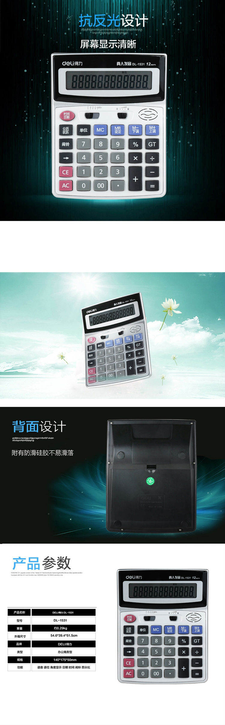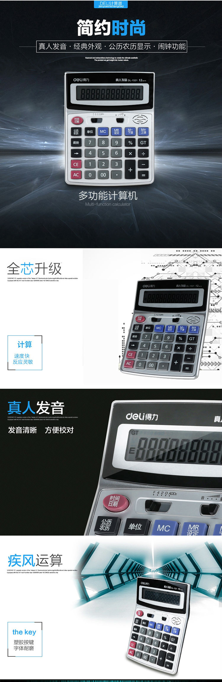 商品名称:得力1531语音计算器(银)(台)