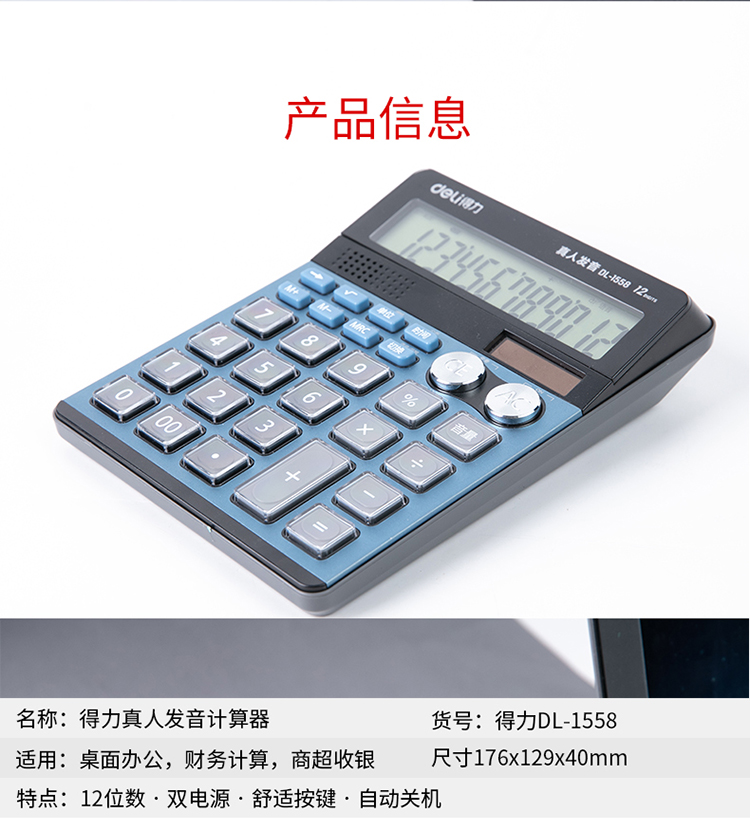 商品名称:得力1558双模式语音计算器(蓝)