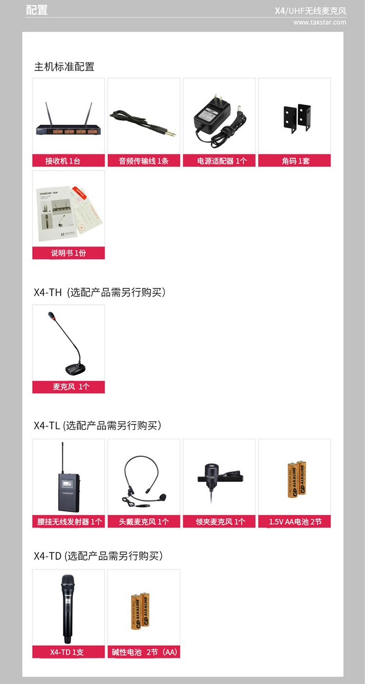 商品名称:得胜X4-TH-UHF无线麦克风会议发射器鹅颈 (只)
