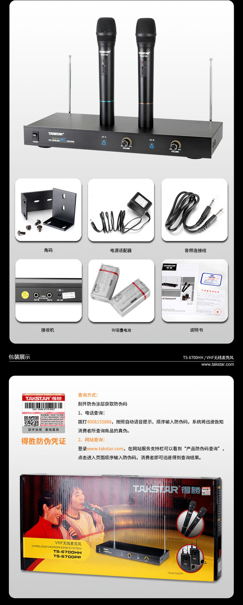 商品名称:得胜TS-6700HH无线麦克风(台)