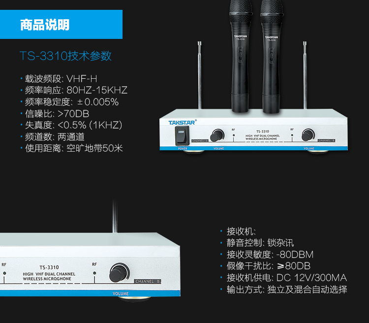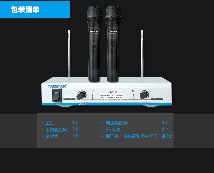 商品名称:得胜TS-3310HH手持无线麦克风一拖二(套)