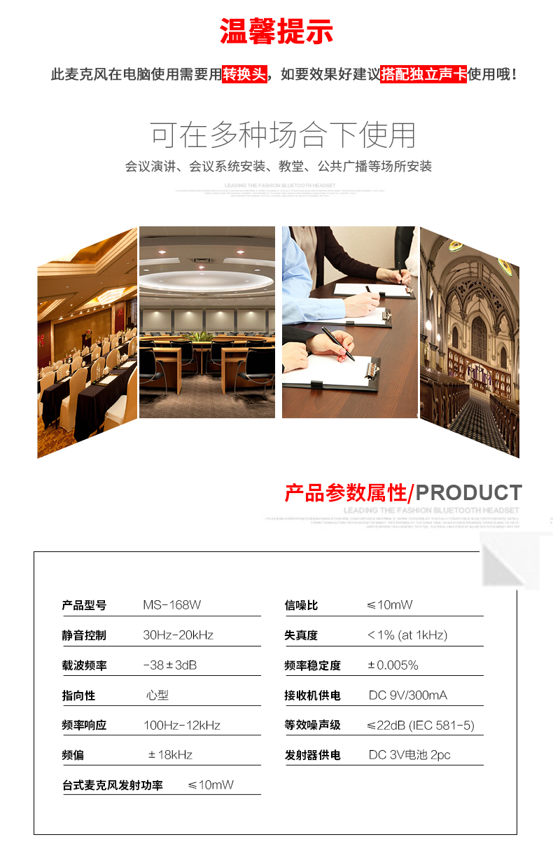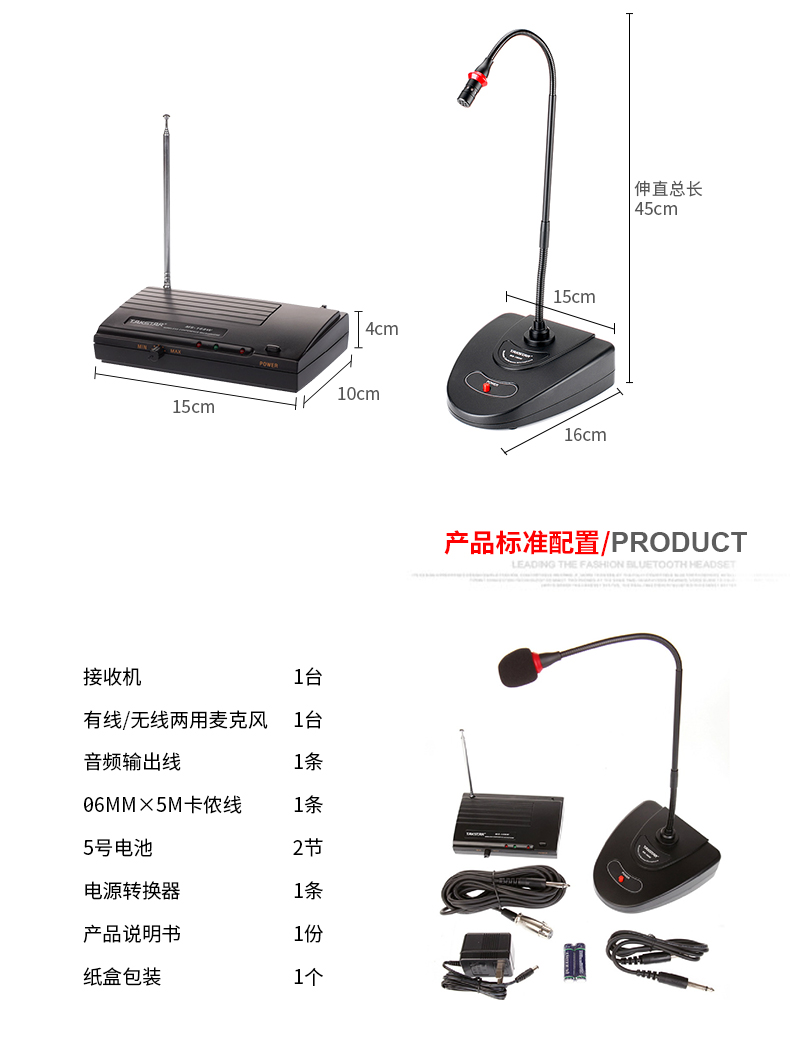 商品名称:得胜MS-168W一拖一会议话筒