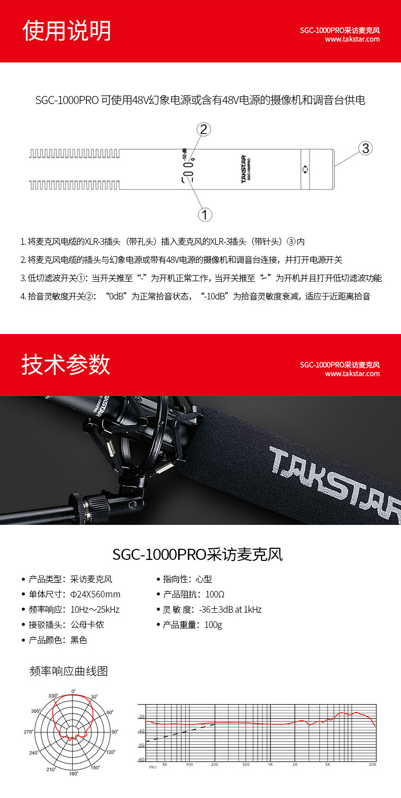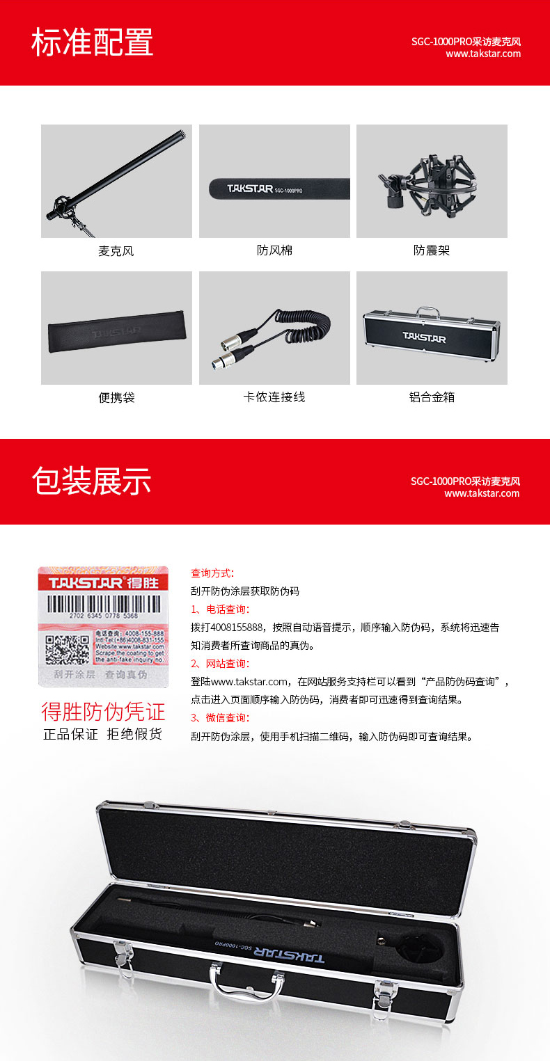 商品名称:得胜SGC-1000PRO新闻采访话筒(个)