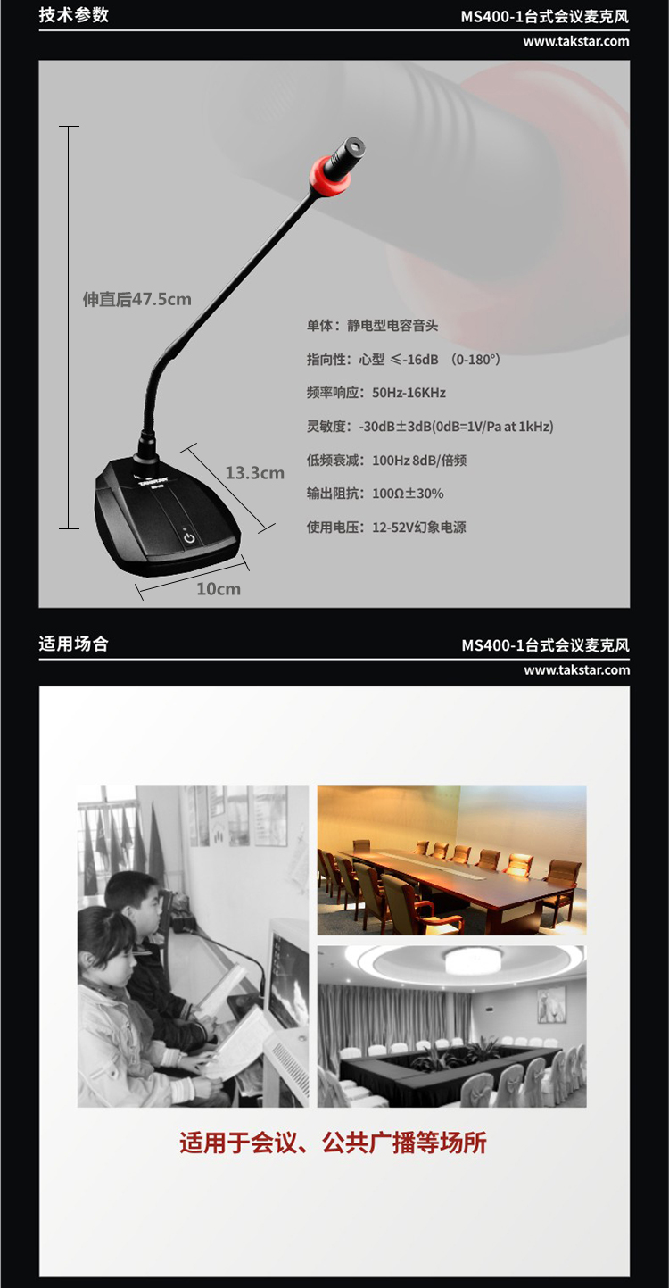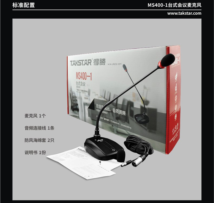商品名称:得胜MS400-1鹅颈会议话筒黑(只)