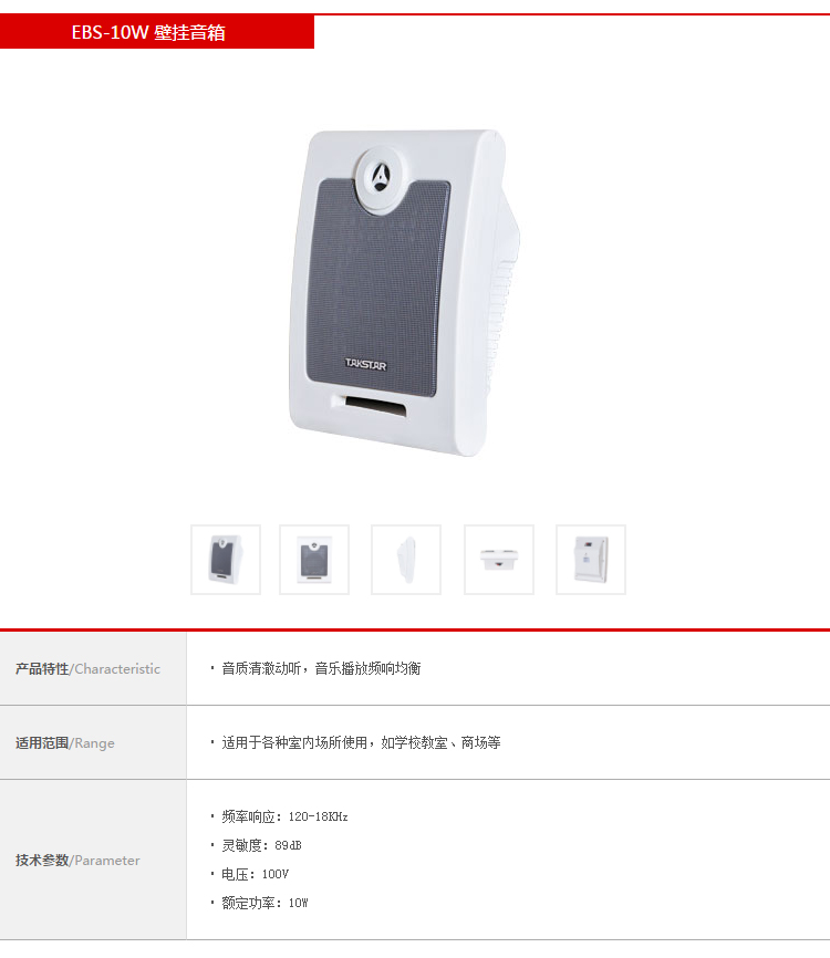 商品名称:得胜EBS-10W定压壁挂音响