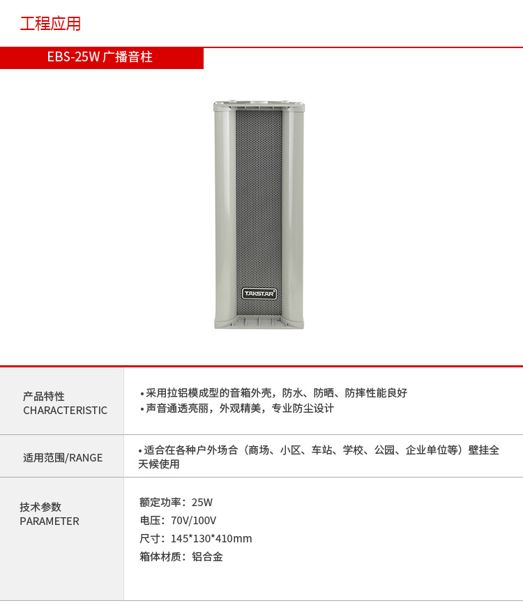 商品名称:得胜EBS-25W 定压音柱