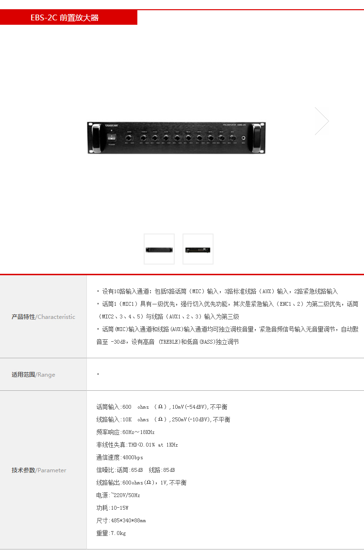 商品名称:得胜EBS-2C 前置放大器