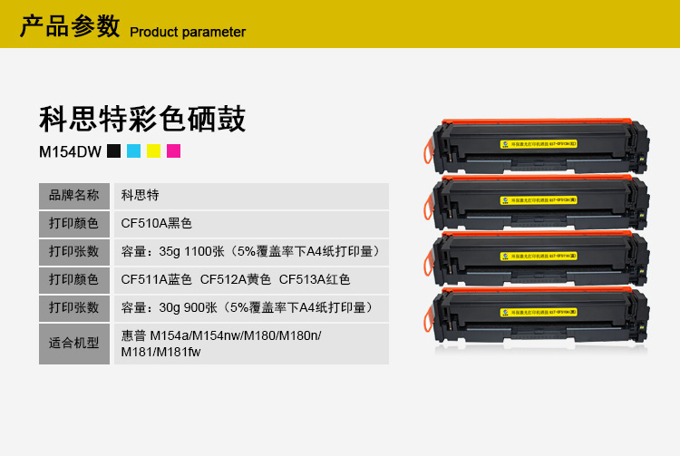商品名称:科思特CF512A硒鼓 适用惠普 M154a M154nw M180 M180n M181 黄色 专业版