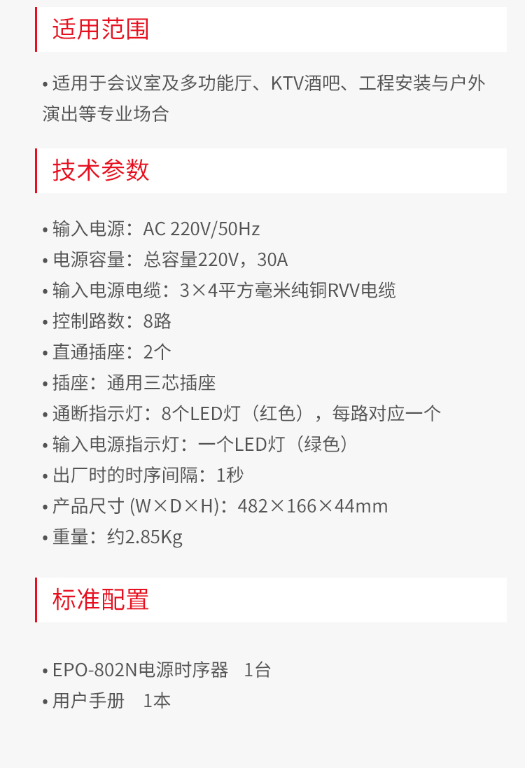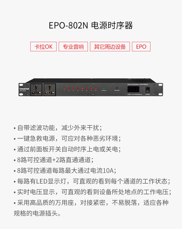 商品名称:得胜EPO-802N 8路电源时序器