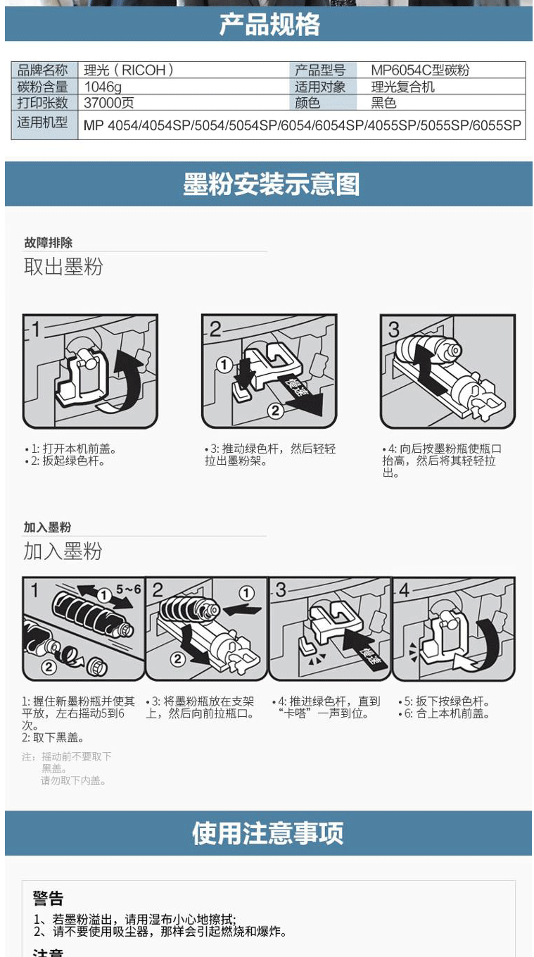 商品名称:理光(Ricoh)MP6054C 碳粉1支装 适用MP4054/4054SP/5054/5054SP/6054/6054SP